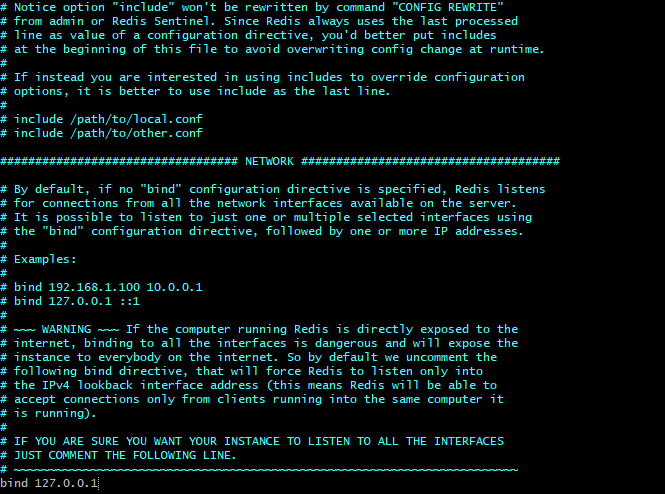 bind 127.0.0.1 을 찾아 0.0.0.0 으로 바꿔준다.