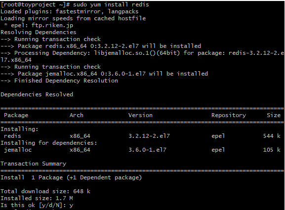 $ sudo yum install redis