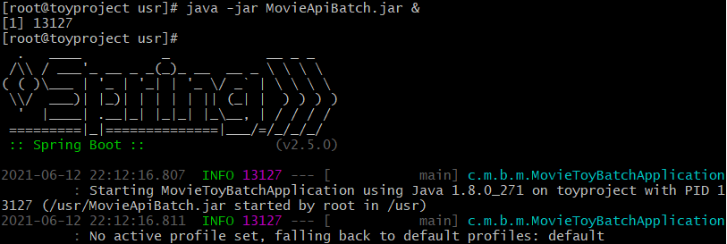 토이 프로젝트로 하고있는 배치를 실행❗❗