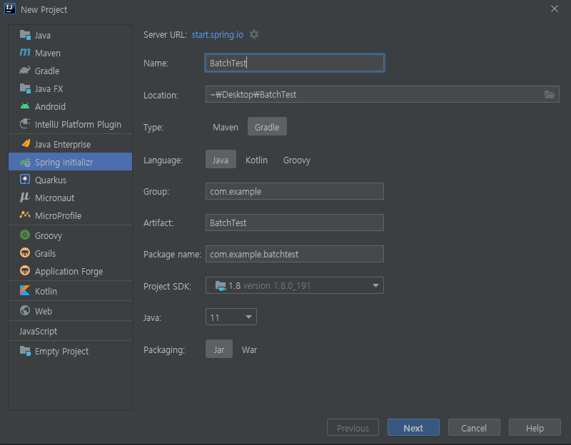 job이라는 패키지를 하나 만들고 BatchConfig.java 파일을 생성한 후 코드를 작성하자!