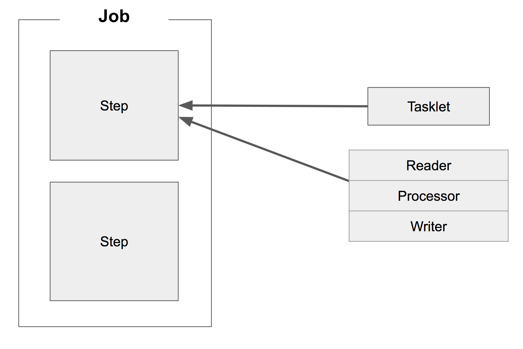 Job안에는 여러개의 Step이 존재할 수 있고, Step안에는 하나의 Tasklet 혹은 하나의 Reader&Processor&Writer가 존재한다😀