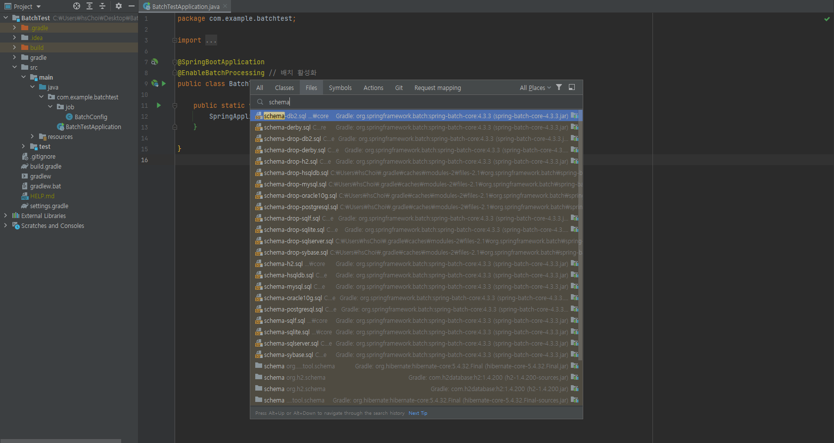 [Ctrl]+[Shift]+N 단축키를 이용해 파일 검색창을 열고 schema라고 검색해보자👍
