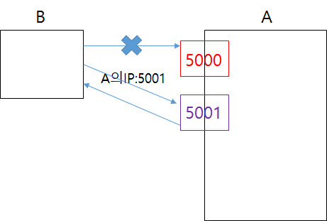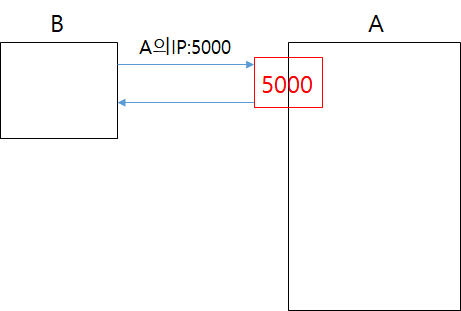 A의 IP주소와 5000번 포트를 입력하면 A와 5000번 포트를 통해 통신할 수 있게 된다.