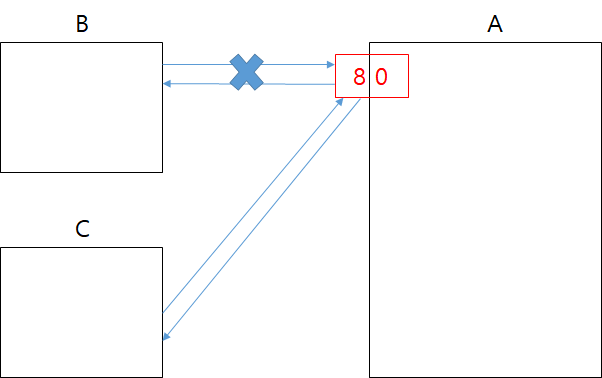 이미 B가 5000번 포트와 연결되어 통신하고 있기 때문에 C는 5000번 포트를 사용할 수 없다.