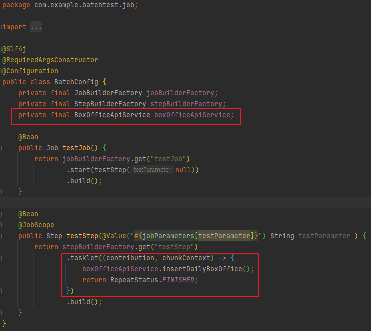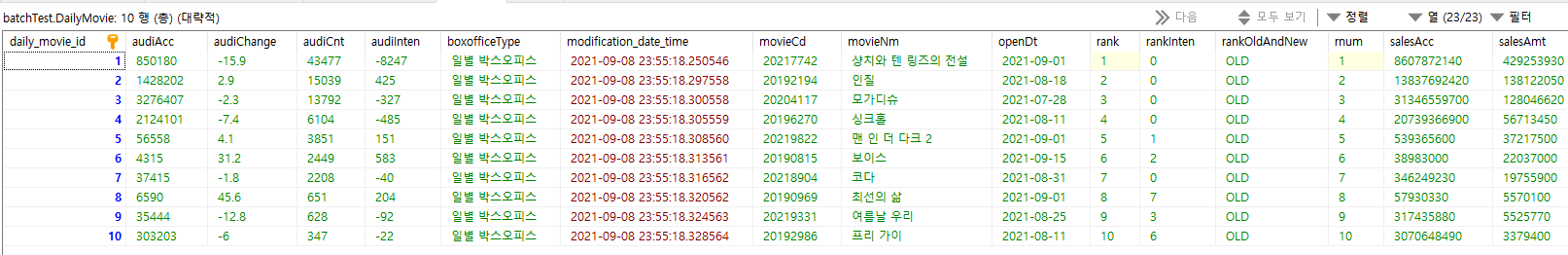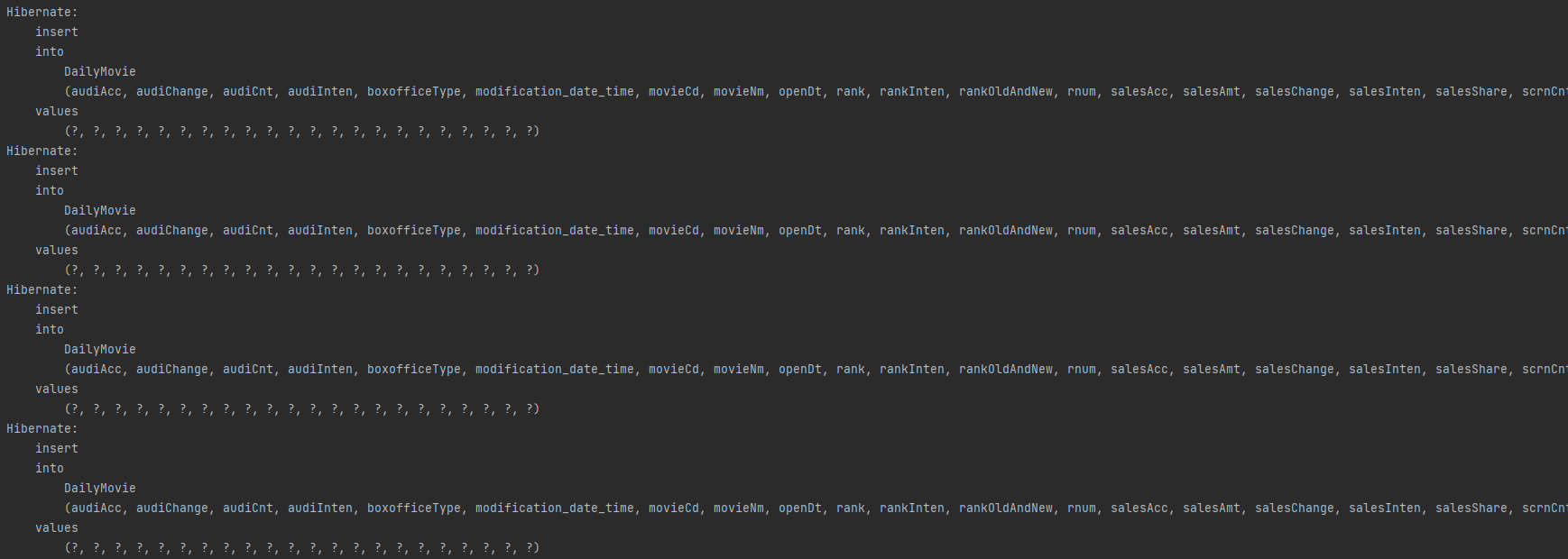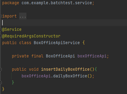 이전에 만들어 놓은 BatchConfig에서 insertDailyBoxOffice()를 호출해서 배치를 실행시켜보자❗❗