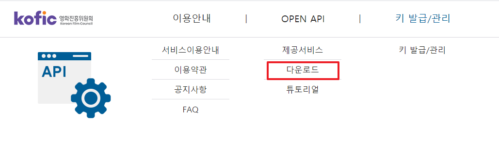 OPEN API 서비스 영화진흥위원회 영화관입장권통합전산망에서 제공하는 오픈API 서비스로 더욱 풍요롭고 편안한 영화 서비스를 즐겨보세요.