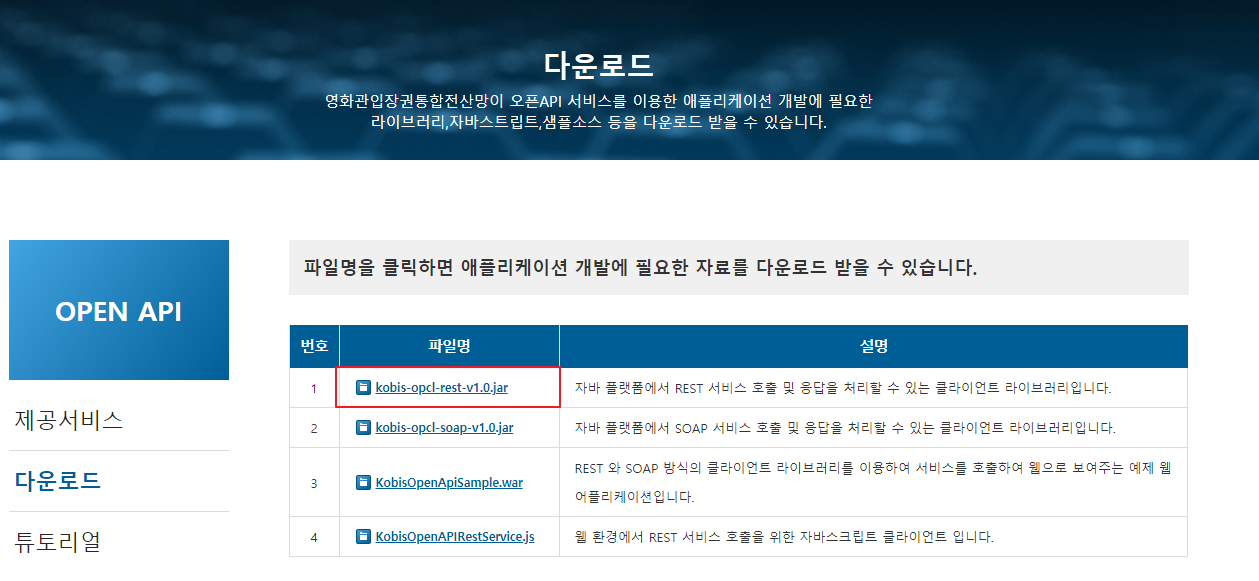 다운로드 페이지에 들어가서 rest 서비스 호출 jar파일을 다운로드받자!