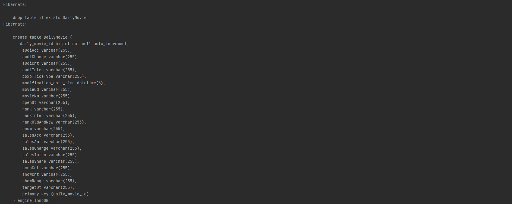 일별 박스오피스에서 response 해주는 data들을 다 넣을 거다❗